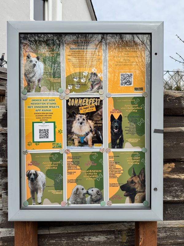 Vor dem Tierefugium Hanau steht ab sofort unser neuer Infokasten und quasi unser kleines „Fenster nach draußen“. Hier findet ihr ab jetzt aktuelle Neuigkeiten, spannende Einblicke in unsere Arbeit und natürlich auch Vorstellungen unserer tierischen Bewohner.
