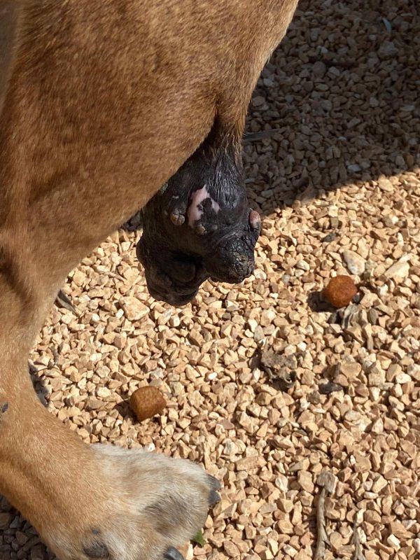 Doch sein Zustand ist weiterhin ernst. Er ist stark abgemagert, wird langsam mit Schonkost aufgebaut und an seinem Hinterlauf zeigt sich eine tumoröse Veränderung, die dringend untersucht werden muss. Eine Behandlung ist aktuell nur unter Sedierung möglich.