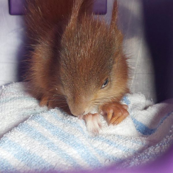 Als unser Team nach kurzer Zeit eintraf, konnten sie das sehr junge und stark geschwächte Eichhörnchen sichern. Es zeigte fast keine Weglauftendenzen und konnte dadurch zügig gesichert werden. Doch leider kam unsere Hilfe zu spät, das das Eichhörnchen vertarb nach kurzer Zeit. Leider gibt es auch diese Einsätze, bei denen wir das Leben der Tiere nicht mehr retten können.